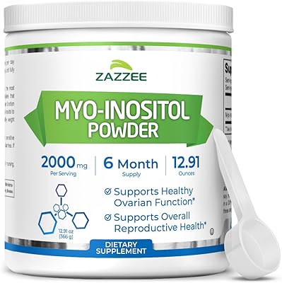 Zazzee Myo-Inositol Powder, 6 Month Supply, 183 Servings, 2000 mg per Serving, Free Scoop for Exact Dosage, 12.91 Ounces, 100% Pure, All-Natural Fertility and Reproductive Support, Vegan, Non-GMO
