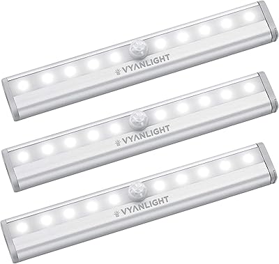 VYANLIGHT Motion Sensor LED Under Cabinet Lights, 10 LED Light Strips for Closet, Kitchen, Bathroom, Pantry - Battery Operated, Wireless, Peel and Stick, 3 Pack