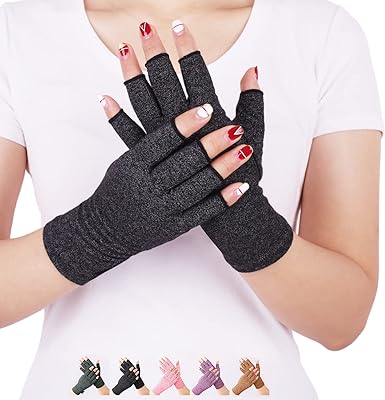 DISUPPO Arthritis Compression Gloves Relieve Pain from Rheumatoid, RSI,Carpal Tunnel, Hand Gloves Fingerless for Computer Typing and Dailywork, Support for Hands and Joints L, Black