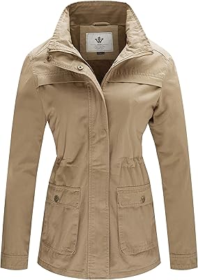 WenVen Womens Casual Military Jacket Cotton Stand Collar Utility Anorak Coat