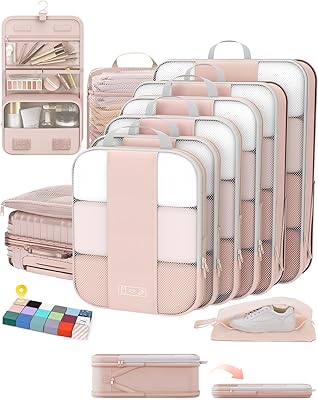 10 Set Compression Packing Cubes for Travel Gifts Women Mom,OlarHike Luggage Clothes Organizer for Travelers,AirplaneCruiseCarTrain Travel Essentials,Compressible Expandable Saver Space BagsBeige
