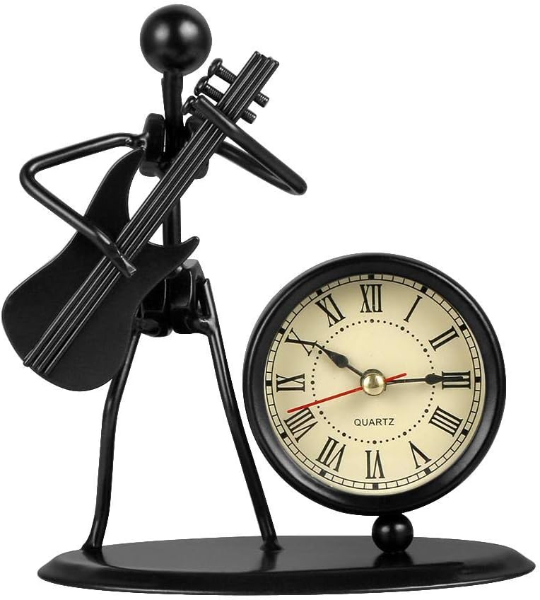 SUME Guitar Playing Metal Man Desk Clock Home Office Decor Ornament